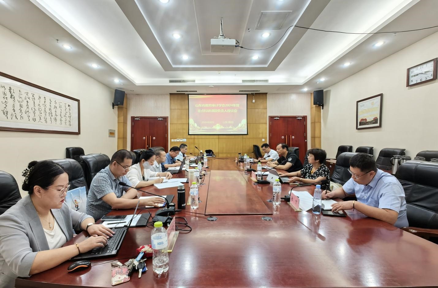 为提升全省教育审计科研水平,调度督导重点科研课题的进度情况,2024年8月1日上午,山东省教育审计学会召开2024年度重点科研课题负责人座谈会。会议由副秘书长兼学术研究部部长张宁主持,会长司金贵,副会长兼秘书长梁星,副会长许庆良,以及教育审计重点科研课题负责人和相关人员参加了会议。