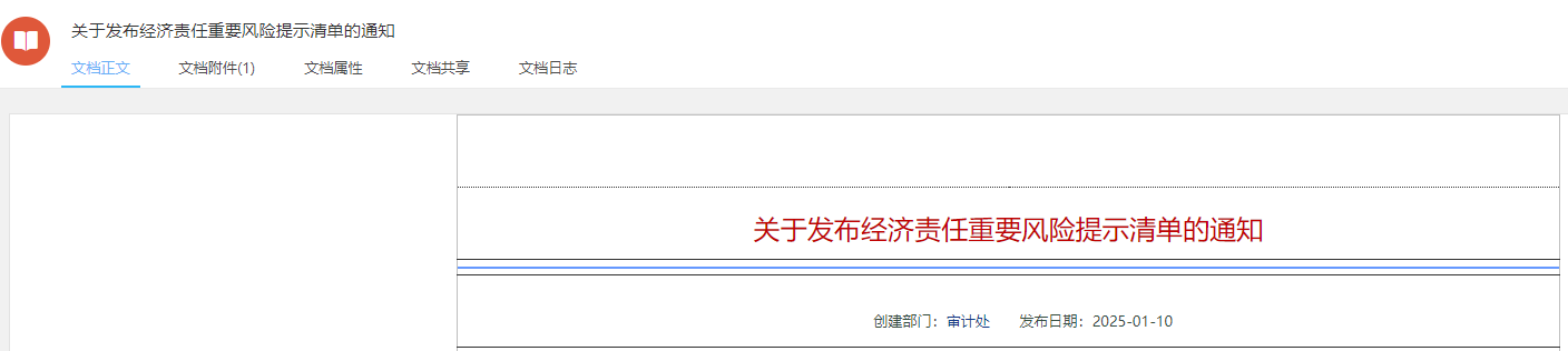 为防范和化解各二级部门主要领导干部履行经济责任风险,提升学校内部治理水平,推动领导干部规范履职尽责,青岛职业技术学院审计处参照《教育部直属高校主要领导干部履行经济责任重要风险提示清单》、上级审计问题清单及学校历年内外部审计发现问题,结合学校实际情况,对学校中层领导干部履行经济责任易发问题的风险点进行汇总分析,形成二级部门主要领导干部经济责任重要风险提示清单,并对二级部门予以发布。