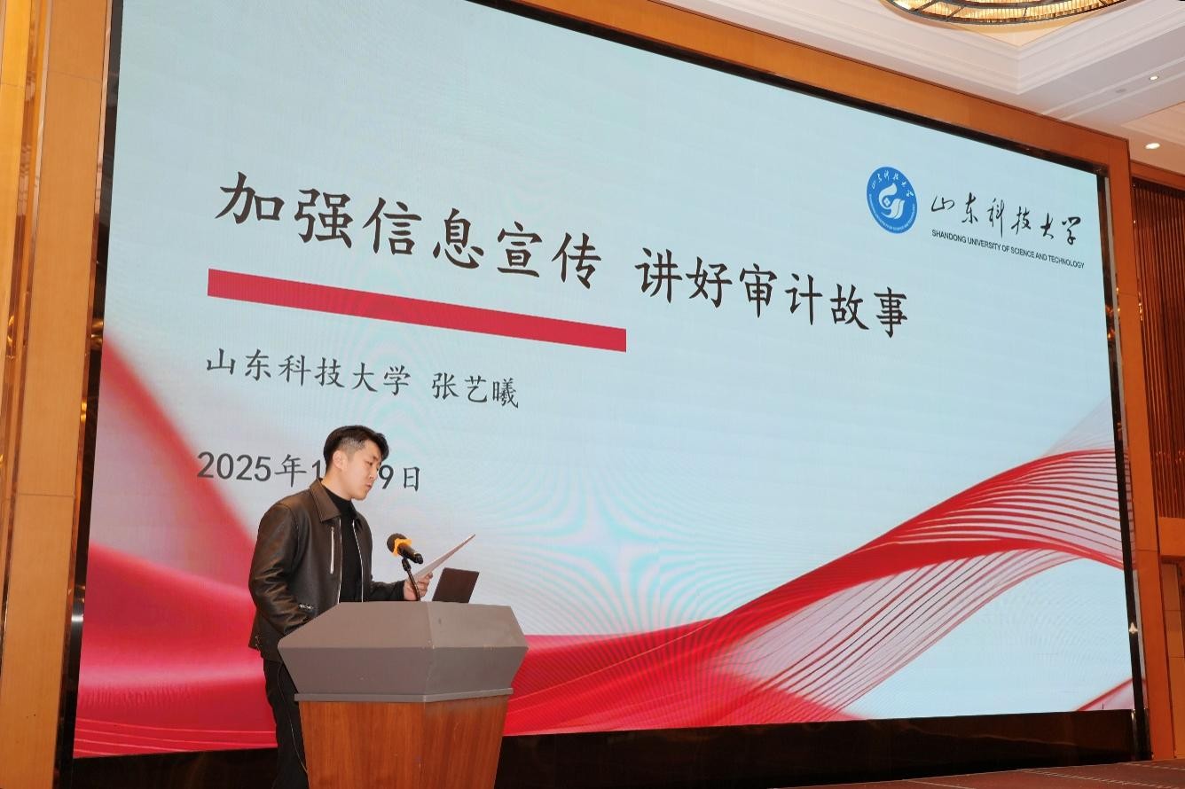 为深入贯彻落实党的二十届四中全会精神,适应新时代审计信息宣传工作新要求,全面提升会员单位信息员队伍的专业素养与实战能力,2025年12月9日至12日,山东省教育审计学会举办2025年信息员能力提升研修班,山东科技大学审计处信息员张艺曦作为典型发言单位代表参加了此次交流学习。